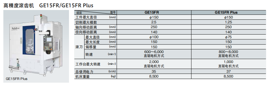 > 高精度滾齒機GE15FR/GE15FR Plus